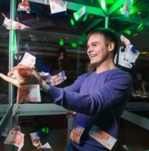 Внутри кабины гости попадают в настоящую денежную бурю: банкноты сыпятся вокруг них, создавая атмосферу максимального азарта и волнения. Участники должны быстро собирать как можно больше денег, стараясь успеть поймать каждую купюру.