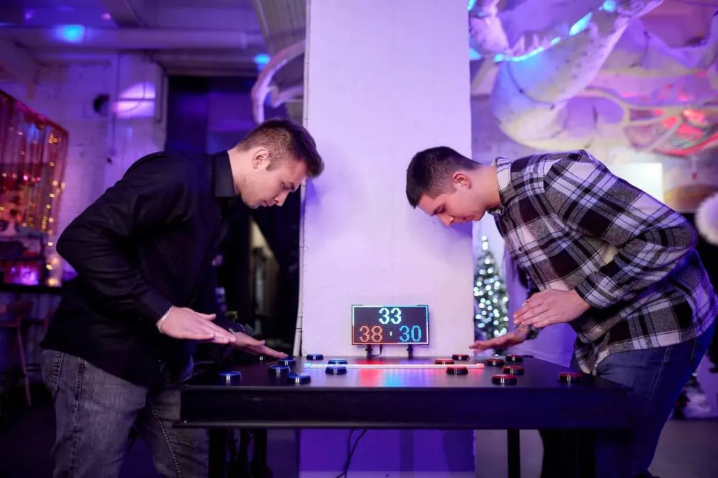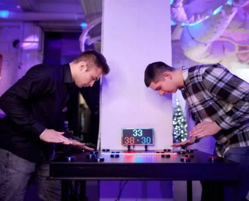 Аттракцион «кнопочный бой» — это световая дуэль на реакцию и скорость, от которой вы будете в восторге! Игра отдаленно напоминает «Ударь крота!», но рассчитана на двоих оппонентов и здесь никого бить не надо!