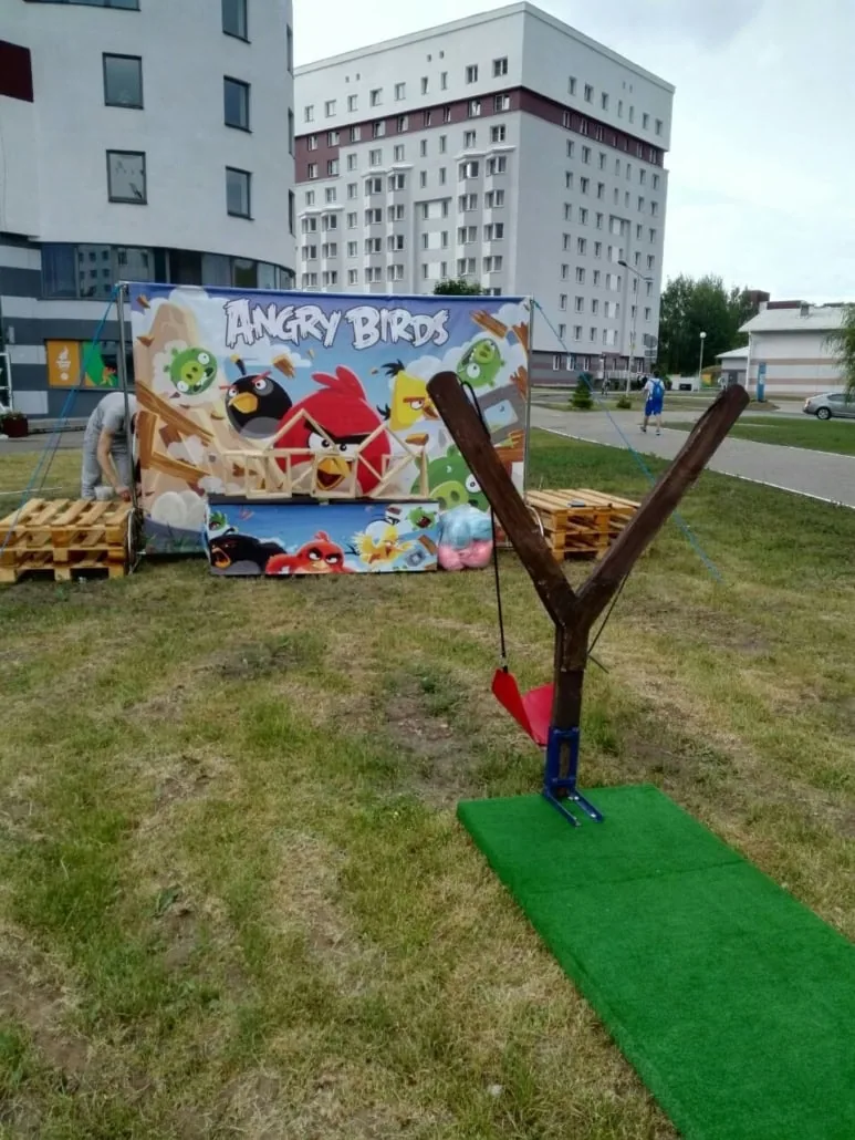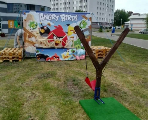 Гигантская рогатка «Angry Birds» в аренду — детская игра огромных размеров!