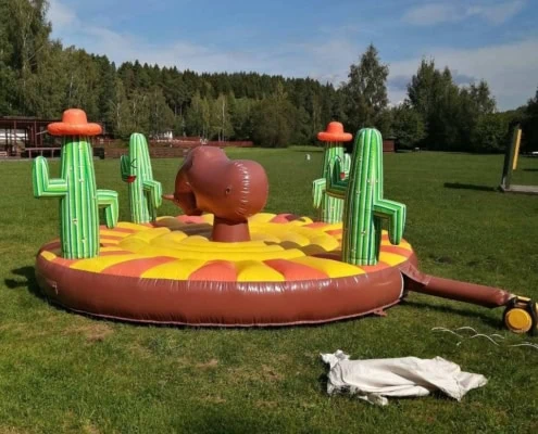 Участники смогут соревноваться друг с другом на надувном бык-родео, пытаясь удержаться на быке как можно дольше. Они могут настраивать уровень сложности, изменяя скорость и режимы работы быка-родео.