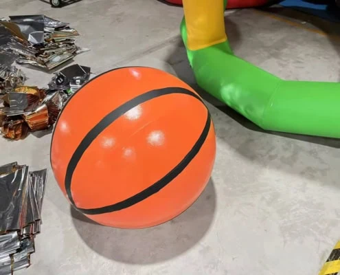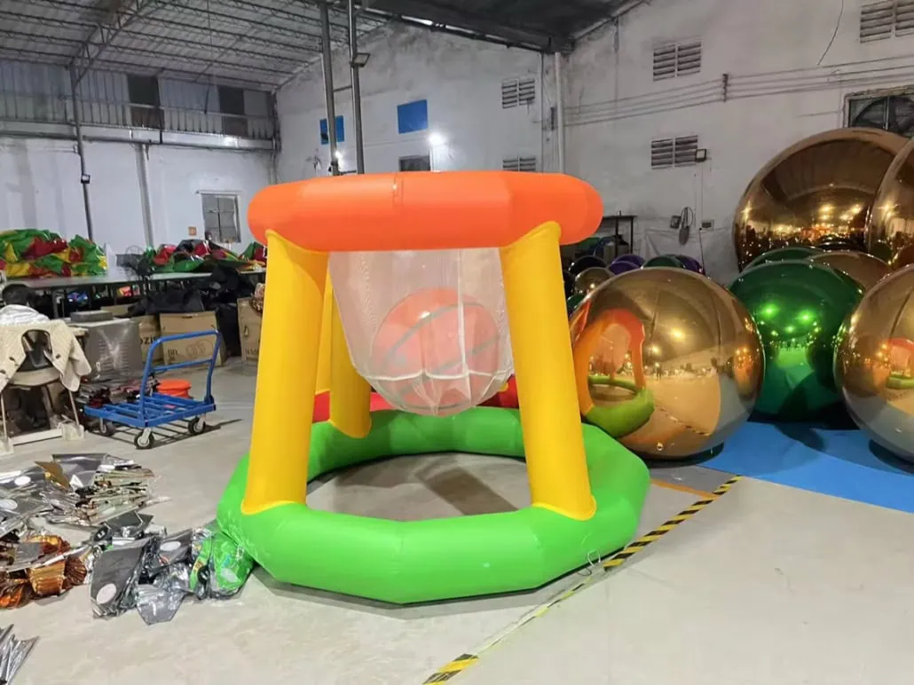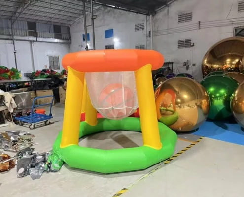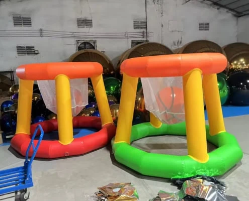 Аттракцион состоит из большого надувного корта с несколькими корзинами разной высоты, что делает его интересным и для детей, и для взрослых. Игроки делятся на команды и пытаются забросить гигантский мяч в корзины оппонентов, что требует стратегического мышления и слаженной командной работы.