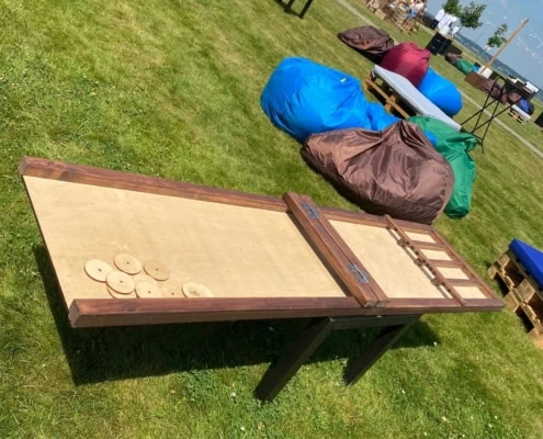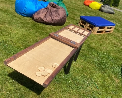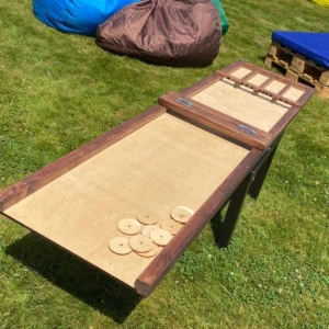 Правила «Джакколо» просты и могут меняться под вашу компанию. Цель игры: загнать 30 деревянных шайб в небольшие пронумерованные арки на платформе с трех попыток. Каждый «дом» пронумерован слева направо и соответствует очкам 2, 3, 4 и 1. Если в каждой арке оказалось по одной шайбе, то сумма очков удваивается.