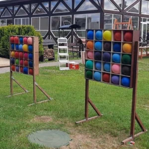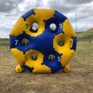 Проверьте ваши навыки меткости в стрельбе из гигантской рогатки, арбалета или лазерной винтовки! Тировые зоны идеально сочетаются с командными видами спорта, головоломками и эстафетами.