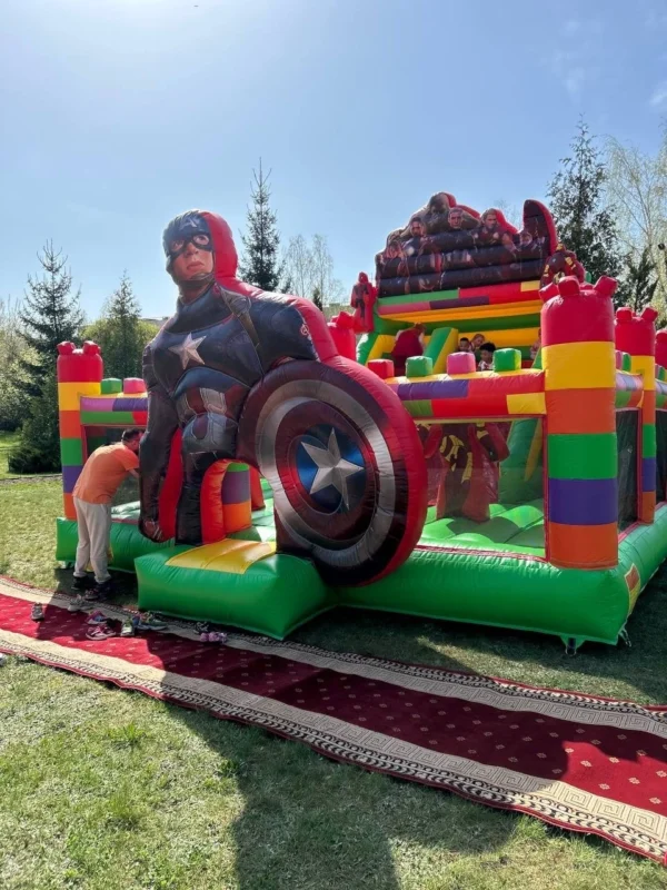 устанавливается надувная конструкция с ярким супергеройским оформлением