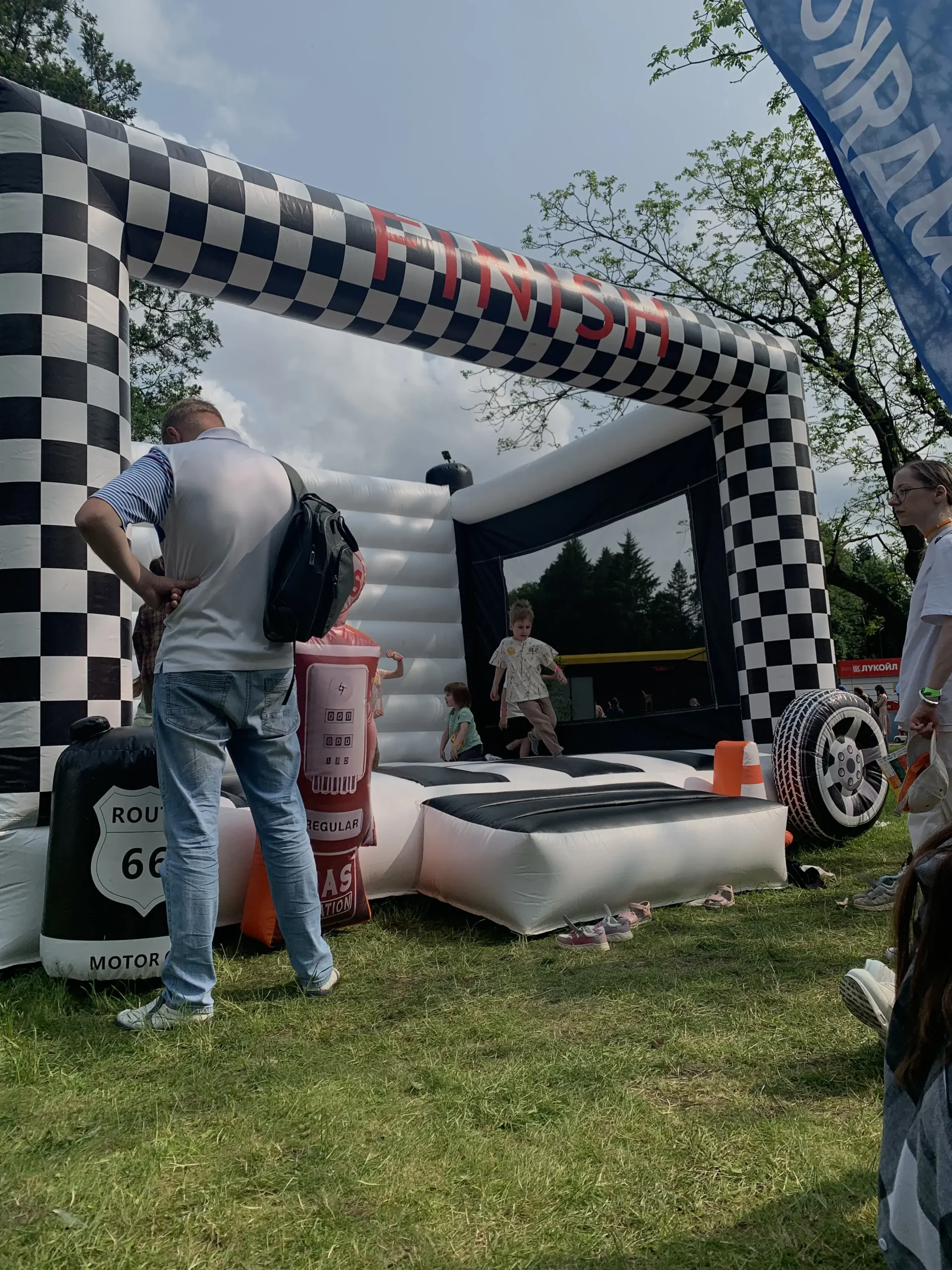 Батут «Пит-стоп» в аренду и прокат в Минске и по Беларуси. Детский надувной батут в автомобильной тематике для праздников, дней рождений и мероприятий.