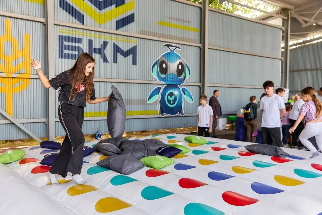 на площадке раскладывается большая надувная игровая поверхность
