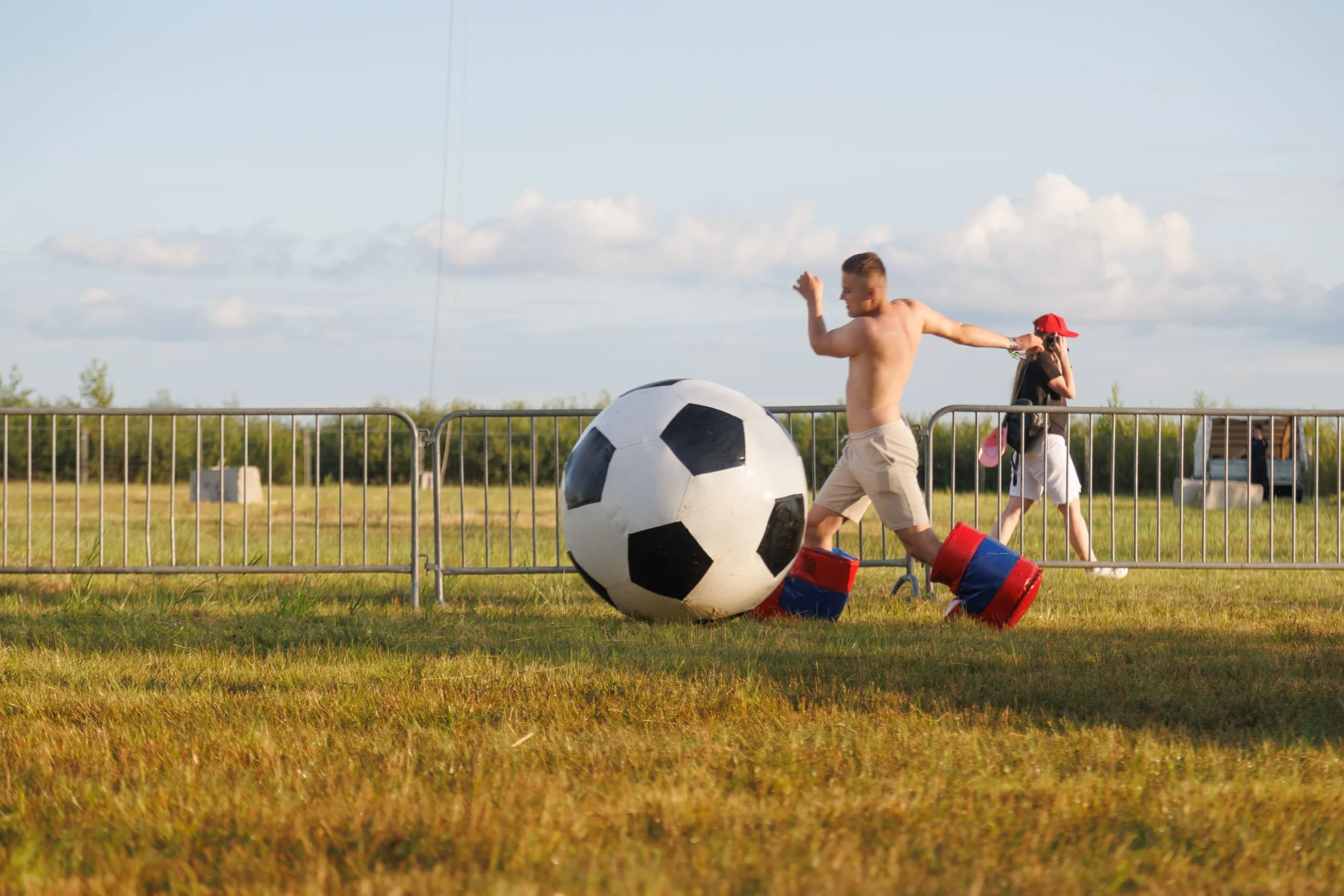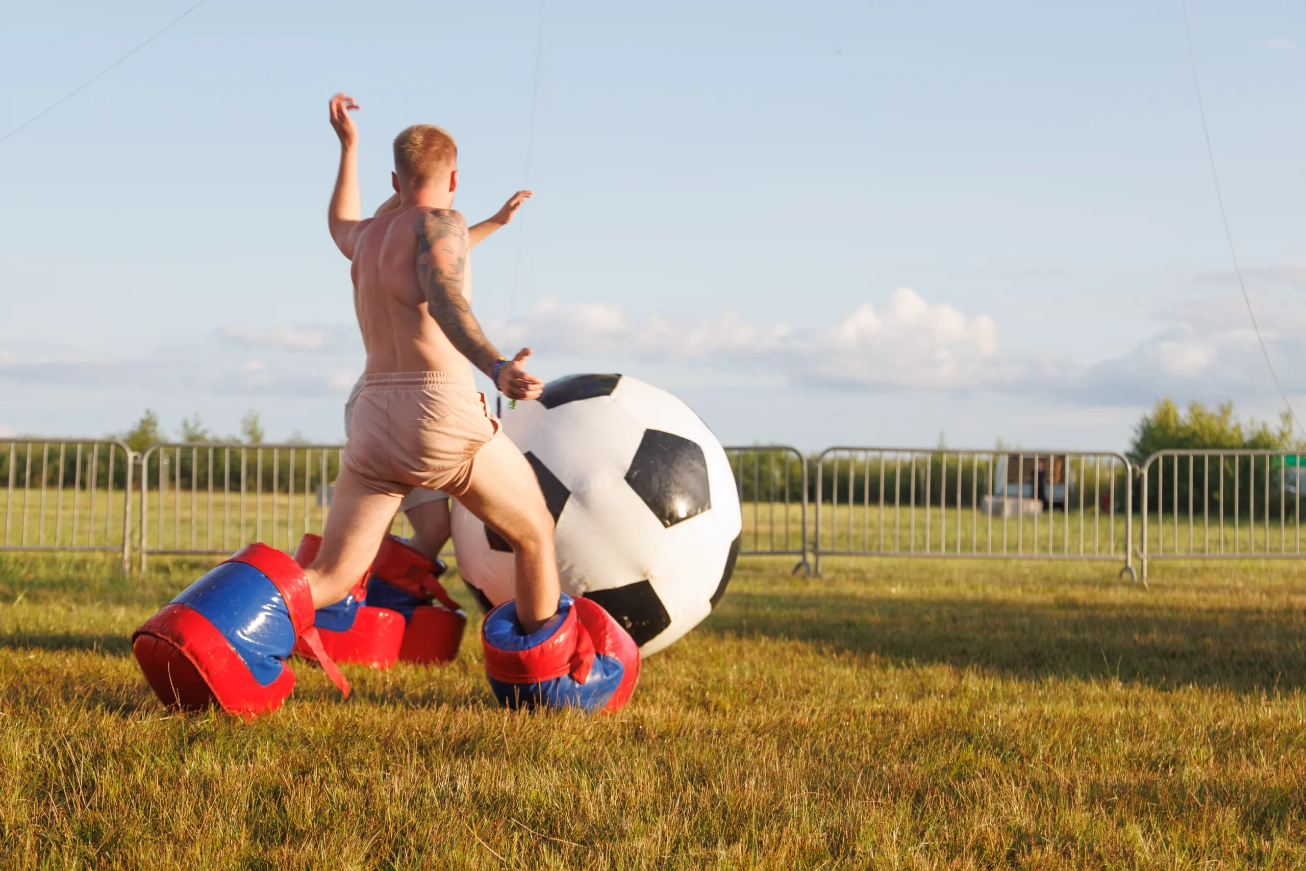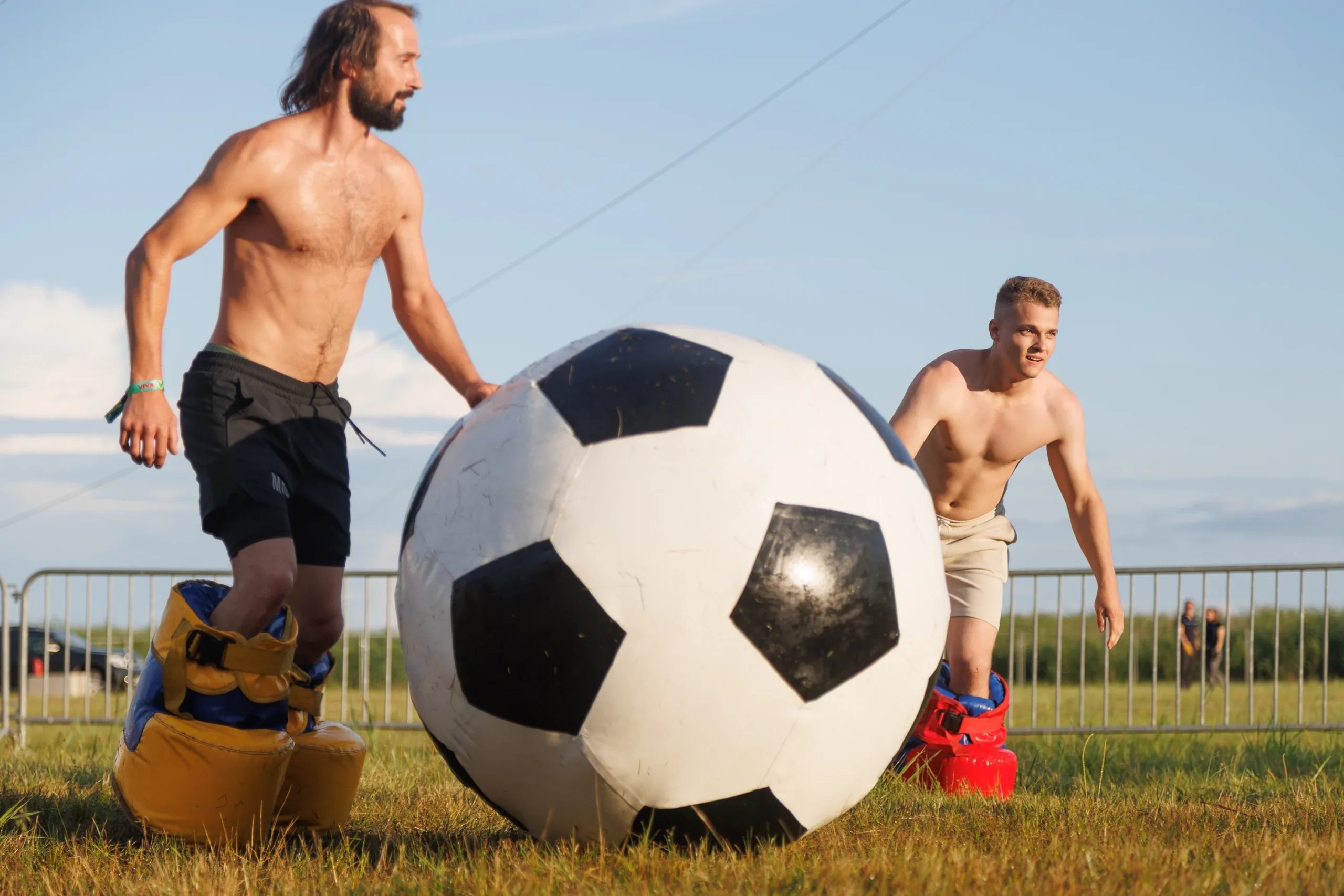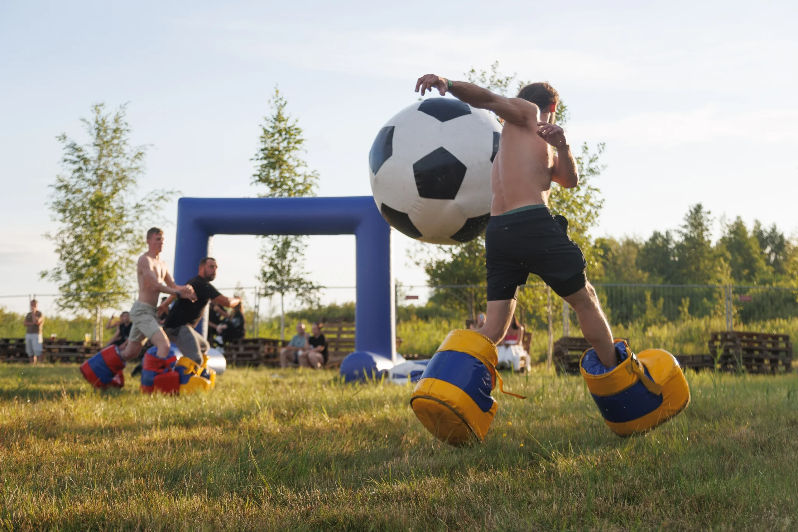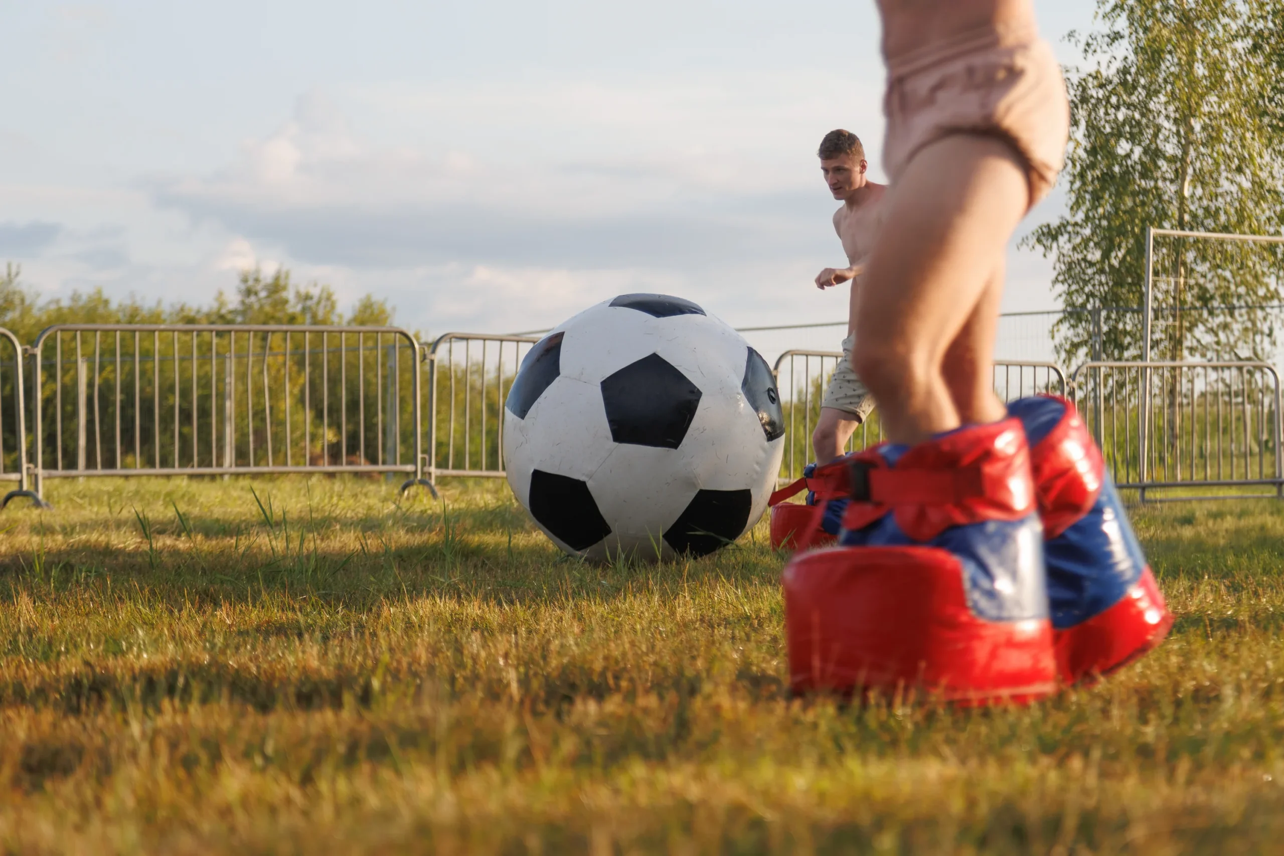 Комический футбол в аренду — это максимально весёлая версия футбола, где участники надевают гигантские бутсы и пытаются играть гигантским мячом. Управлять ногами становится почти невозможно, удары выходят непредсказуемыми, а каждый шаг превращается в комедийную сцену.