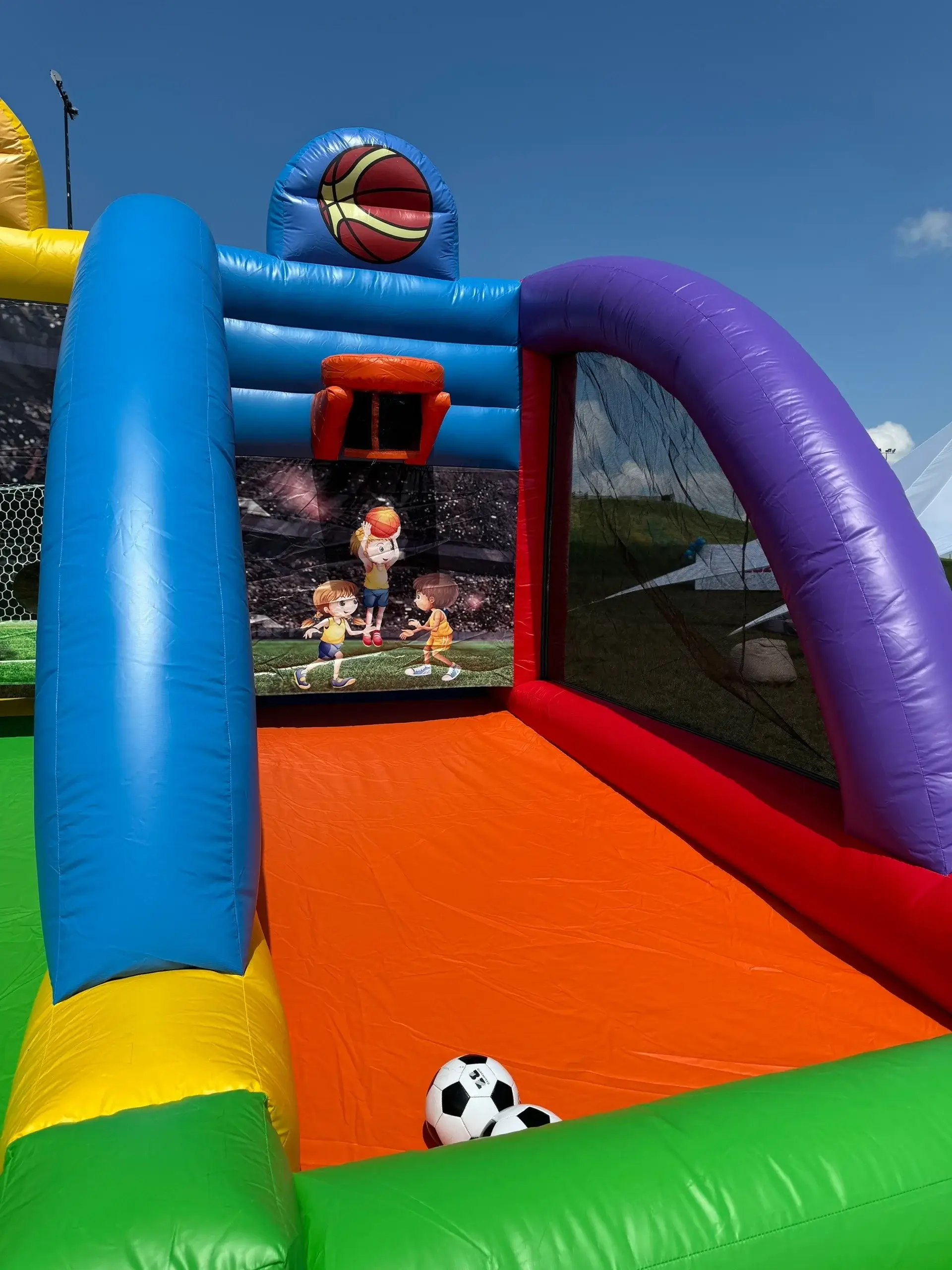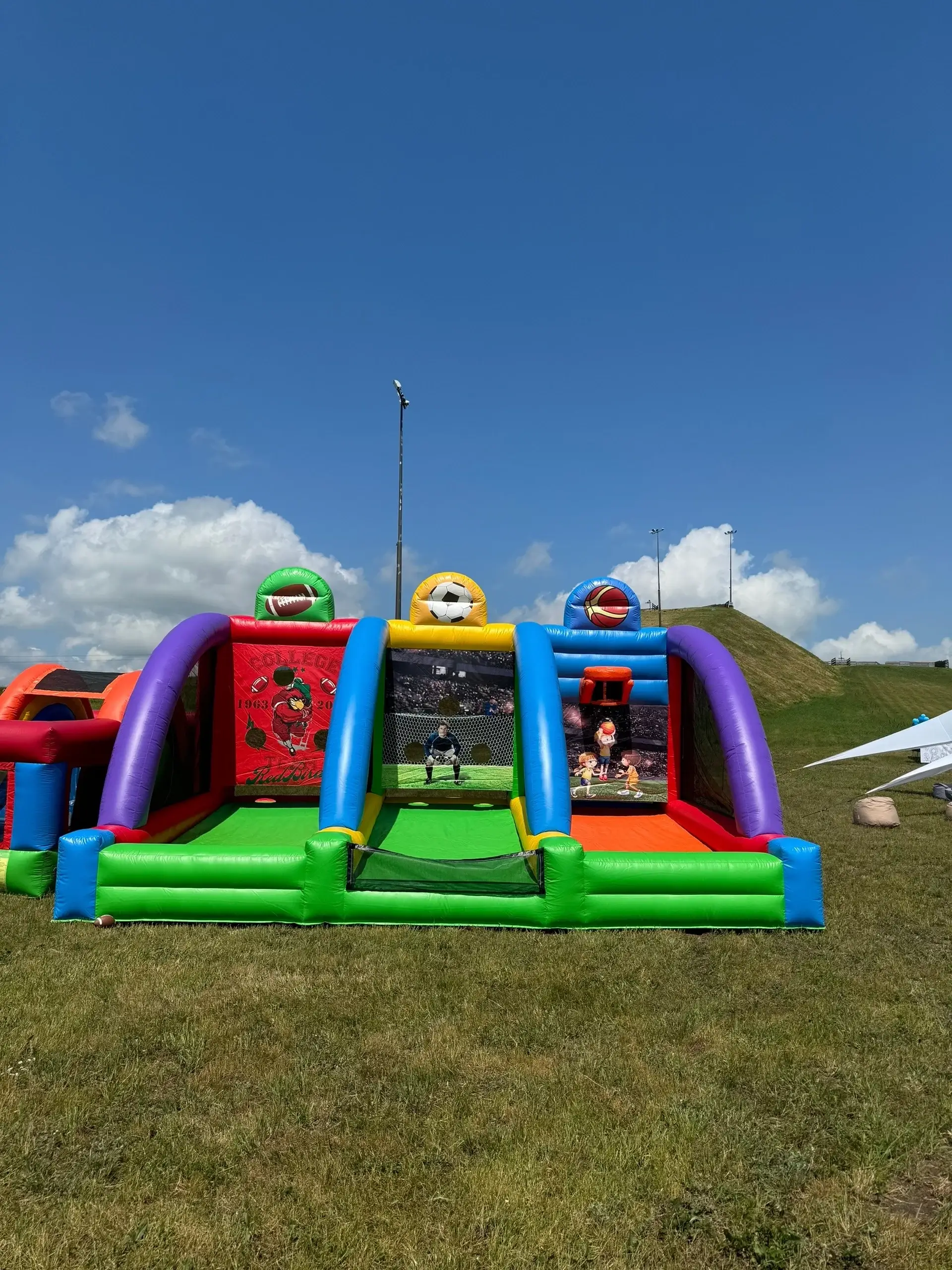 Комплекс 3в1 в аренду и прокат в Минске и по Беларуси. Надувной спортивный аттракцион с баскетболом, американским футболом и футбольными воротами для мероприятий и фестивалей.