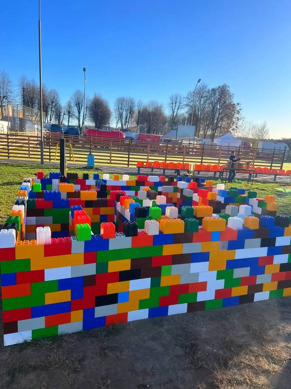 на площадке собирается лабиринт из LEGO-блоков