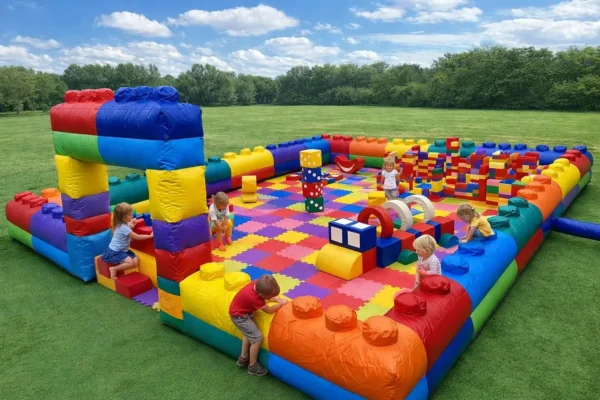 Лего городок в аренду — это полноценная детская игровая зона, оформленная в стиле LEGO. Пространство ограждено надувным забором в виде лего-элементов и имеет тематический вход. Внутри — мягкое безопасное покрытие и множество игровых аксессуаров, которые превращают зону в настоящий город для маленьких строителей.