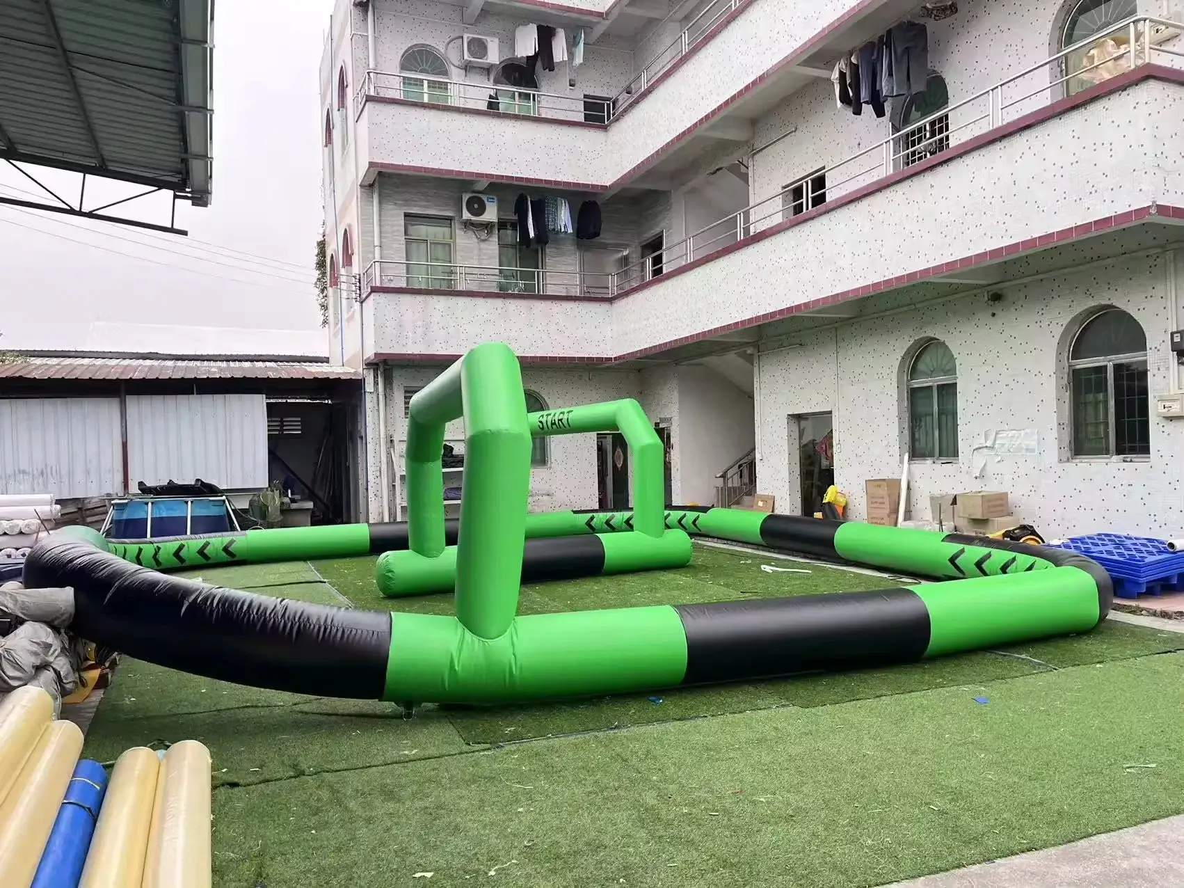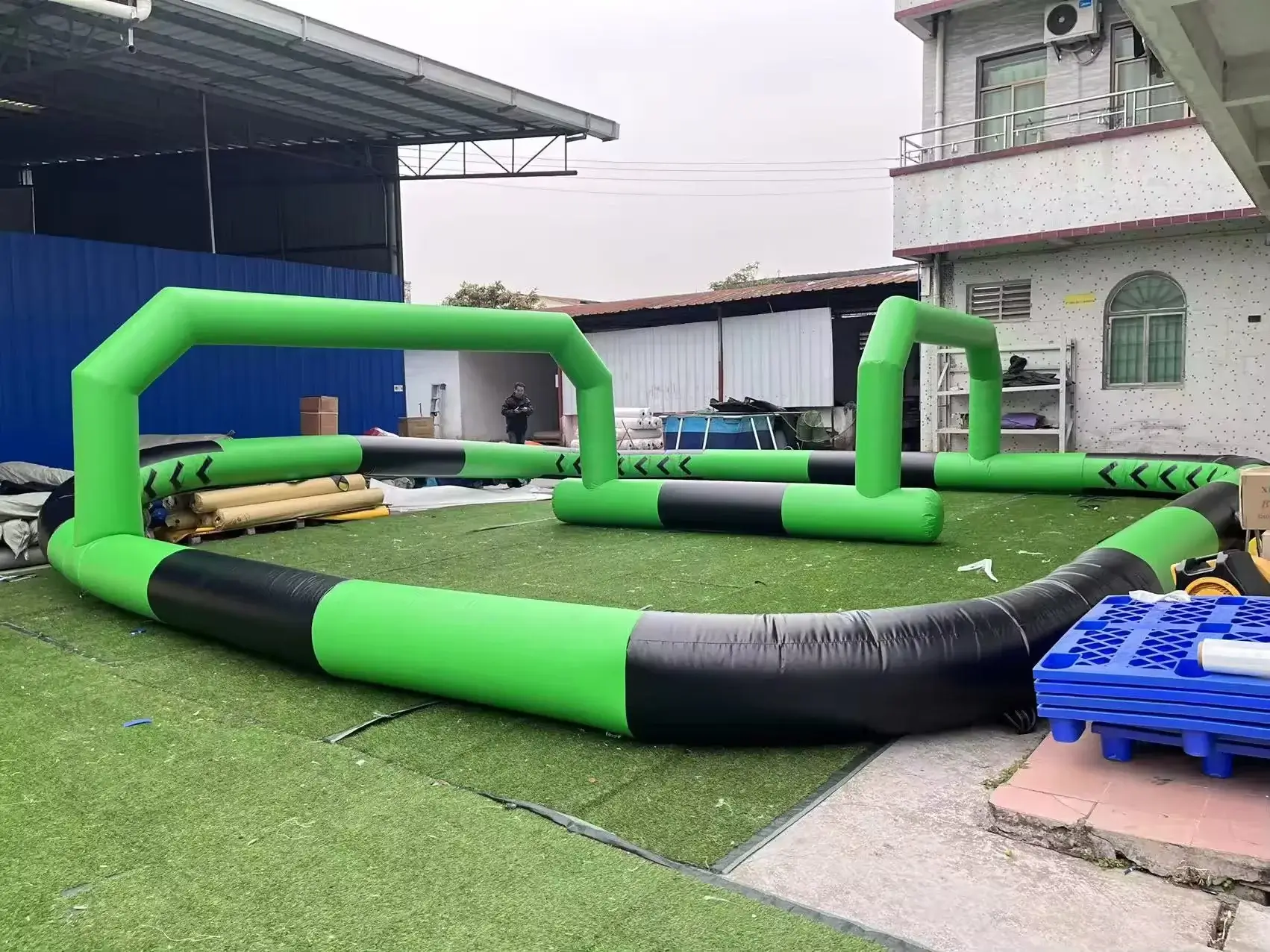 устанавливается надувная трасса с бортиками