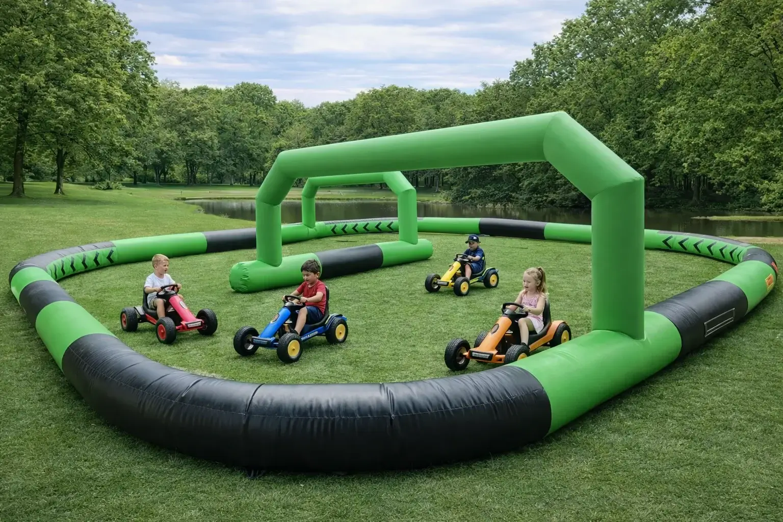 Надувная трасса для машинок и дрифт-каров в аренду в Минске и по Беларуси. Безопасная надувная трасса с бортами для детских заездов, гонок и активных мероприятий.