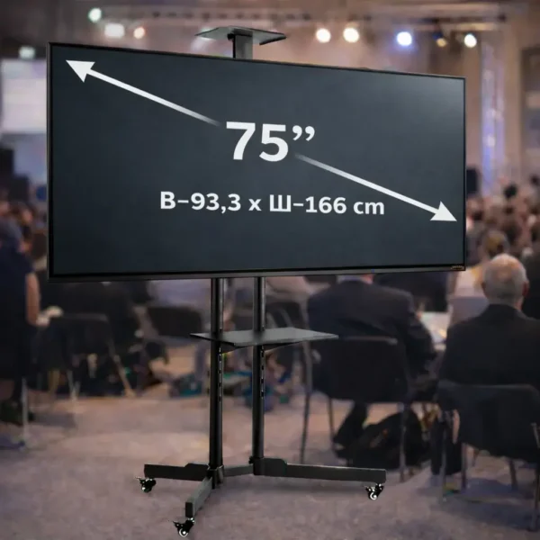 Телевизор 75 дюймов в аренду и прокат в Минске. Большой экран с размерами 166×93,3 см, установка на стойке, доставка и настройка для сцен, фестивалей, презентаций и игровых зон.
